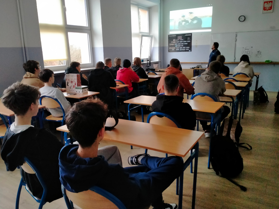 Spotkanie promujące zawód policjanta w Zespole Szkół im. Nansena w Piastowie