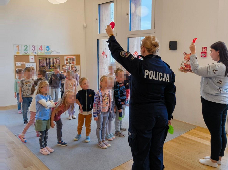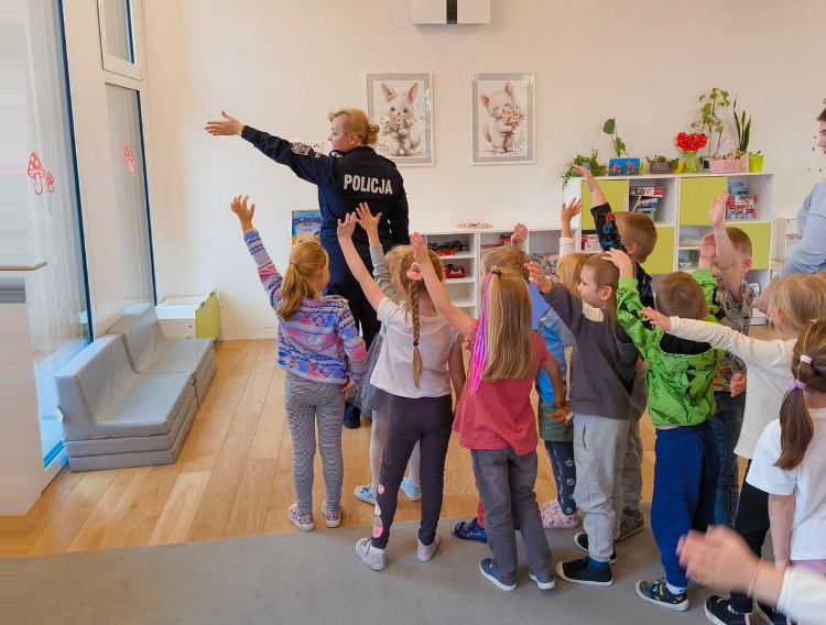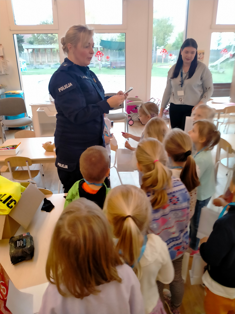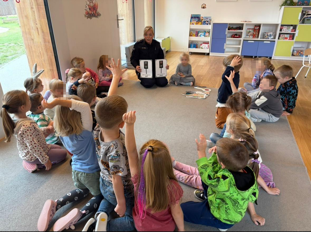 Celem wizyty było przypomnienie zasad bezpiecznego poruszania się po drogach oraz promowanie noszenia elementów odblaskowych. Policjantka opowiadała, jak ważne jest, aby być widocznym na drodze – zwłaszcza po zmroku i w okresie jesienno-zimowym. Dzieci dowiedziały się także, jak bezpiecznie przechodzić przez jezdnię, na co zwracać uwagę w pobliżu ulicy i jak reagować w sytuacjach zagrożenia.