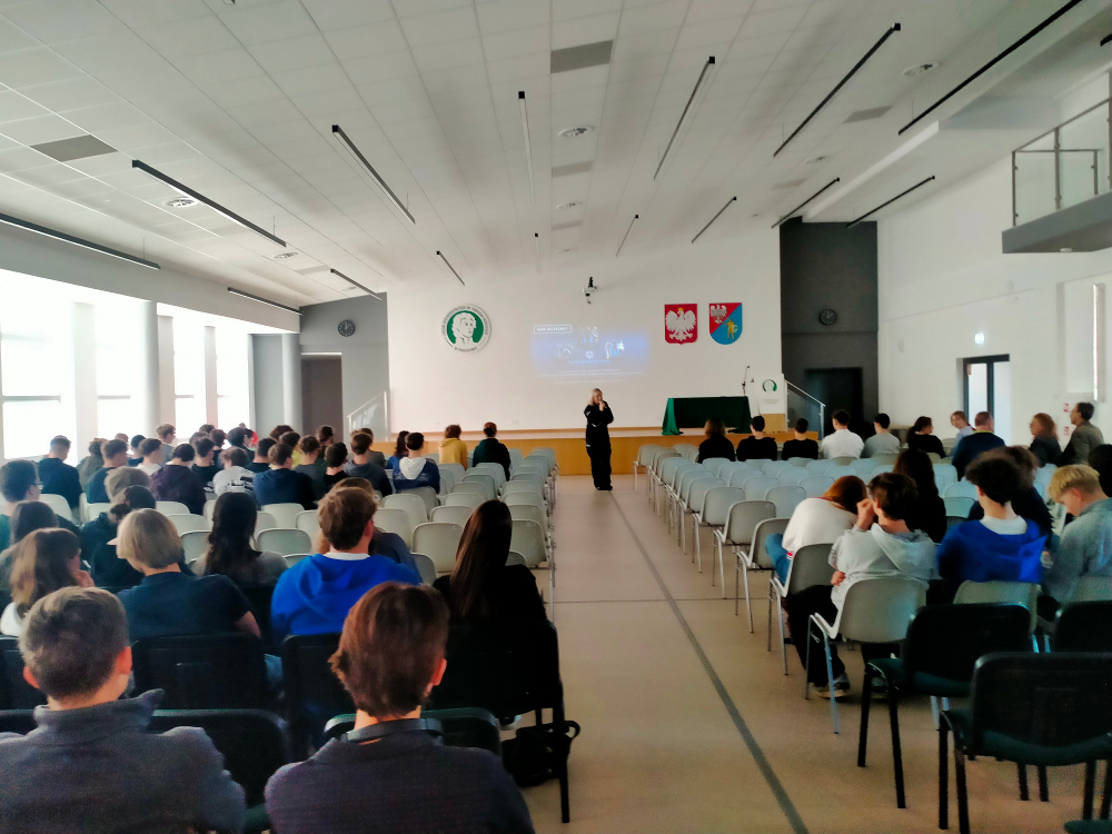 Podczas spotkania funkcjonariuszka opowiedziała o codziennej służbie policjantów różnych pionów – prewencji, ruchu drogowego, kryminalnego i dochodzeniowo-śledczego. Maturzyści mieli okazję poznać zarówno wymagania stawiane kandydatom, jak i etapy postępowania kwalifikacyjnego. Uczniowie z zainteresowaniem słuchali o ścieżkach awansu, możliwościach specjalizacji oraz o misji, jaką jest służba na rzecz bezpieczeństwa i porządku publicznego.