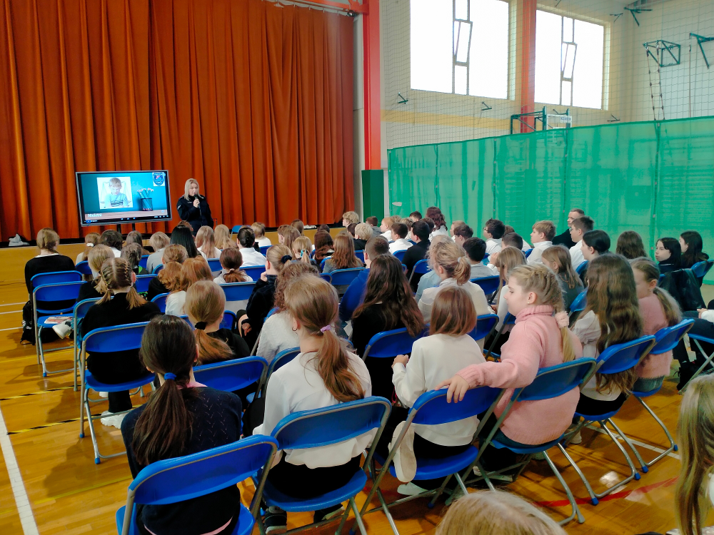 Podczas spotkania podkom. Monika Orlik omówiła zasady odpowiedzialności karnej osób nieletnich, tłumacząc, jakie konsekwencje mogą grozić młodym ludziom za niewłaściwe zachowania, w tym m.in. za cyberprzemoc, znieważanie innych w sieci, czy niszczenie cudzej własności. Uczniowie dowiedzieli się, że Internet, choć daje wiele możliwości, wymaga odpowiedzialnego i kulturalnego korzystania.