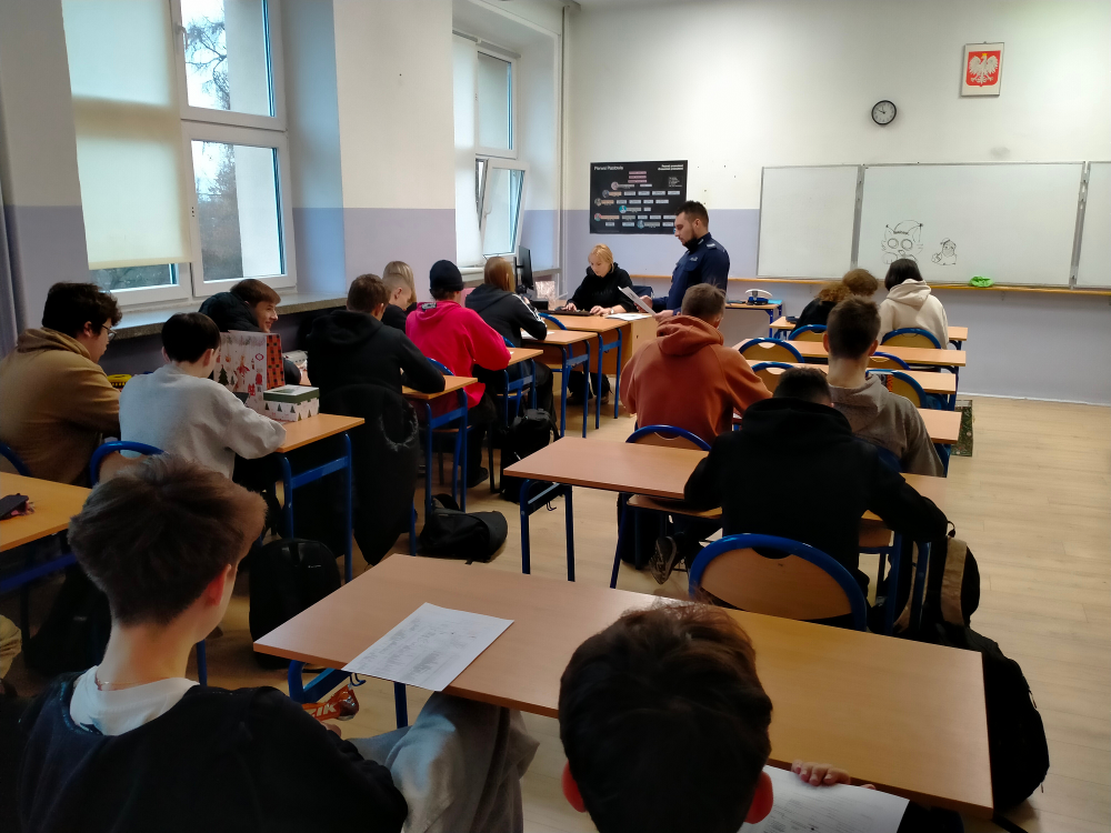 Podczas zajęć uczniowie mieli okazję poznać tajniki codziennej pracy funkcjonariuszy Wydziału Ruchu Drogowego KPP w Pruszkowie. Policjant opowiedział o zadaniach, jakie są realizowane podczas codziennej służby – od kontroli kierujących, poprzez zabezpieczanie miejsc zdarzeń drogowych, aż po podejmowanie interwencji wobec uczestników wykroczeń i przestępstw na drogach powiatu pruszkowskiego.