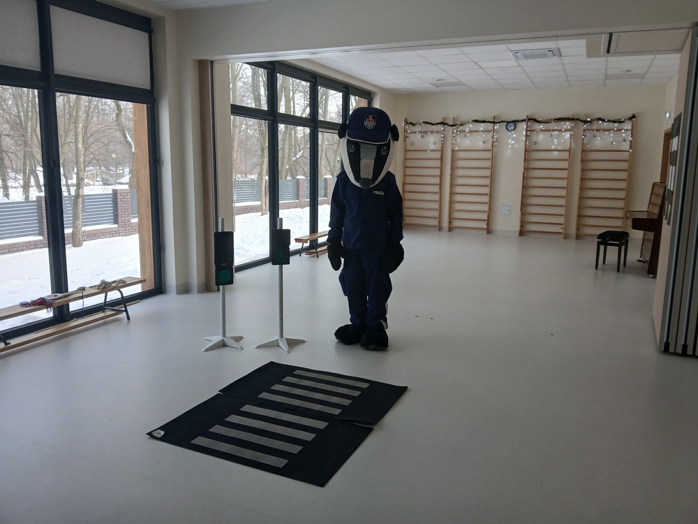 Jedną z atrakcji, która się cieszyła dużym zainteresowaniem wśród najmłodszych, była możliwość zaprezentowania wraz z sierżantem Borsukiem, jak poprawnie przechodzi się po przejściu dla pieszych- dzieci miały dostępne rekwizyty w postaci pasów drogowych oraz sygnalizacji świetlnej.