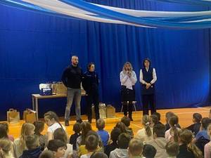 W uroczystości wręczenia nagród uczestniczyli uczniowie, nauczyciele placówki oraz dzielnicowa z Komisariatu Policji w Nadarzynie- mł. asp. Ewelina Kozłowska-Chłopaś. Spotkanie było okazją do ponownego przypomnienia, jak ważne jest noszenie odblasków.