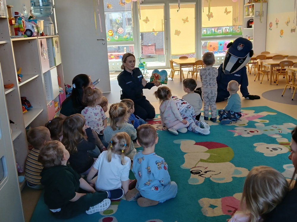 Podczas wizyty w każdej z grup dzieci wysłuchały wybranej książeczki, a po jej zakończeniu miały okazję bliżej poznać policyjny mundur oraz oswoić się z wizerunkiem funkcjonariusza. Nie zabrakło także czasu na wspólną zabawę z sierżantem Borsukiem, który jak zawsze wywoływał uśmiech na twarzach dzieci.