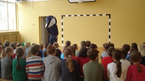 Po raz kolejny w szkołach powiatu pruszkowskiego odbyły się spotkania z borsukiem, który przez zabawę z dziećmi utrwala wiadomości o zasadach bezpiecznego poruszania się po ulicach oraz o konieczności używania odblasków. Nie zabrakło także informacji na temat zachowania się w przypadku spotkania z niebezpiecznym zwierzęciem, osobą „obcą”. Dzieci dowiedziały się także co zrobić kiedy się zgubią.